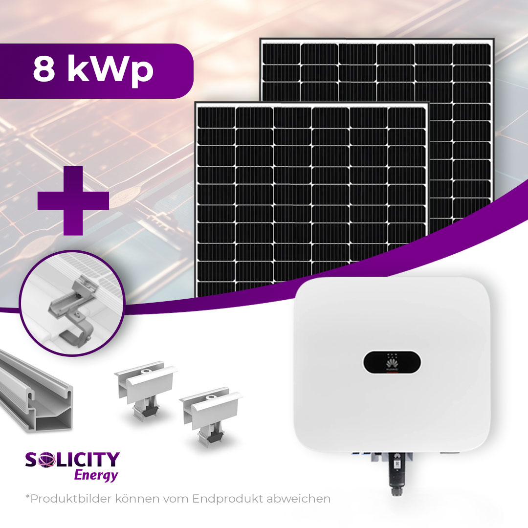 Das Komplettpaket 8 kWp umfasst hochwertige Komponenten für eine effiziente Photovoltaikanlage.